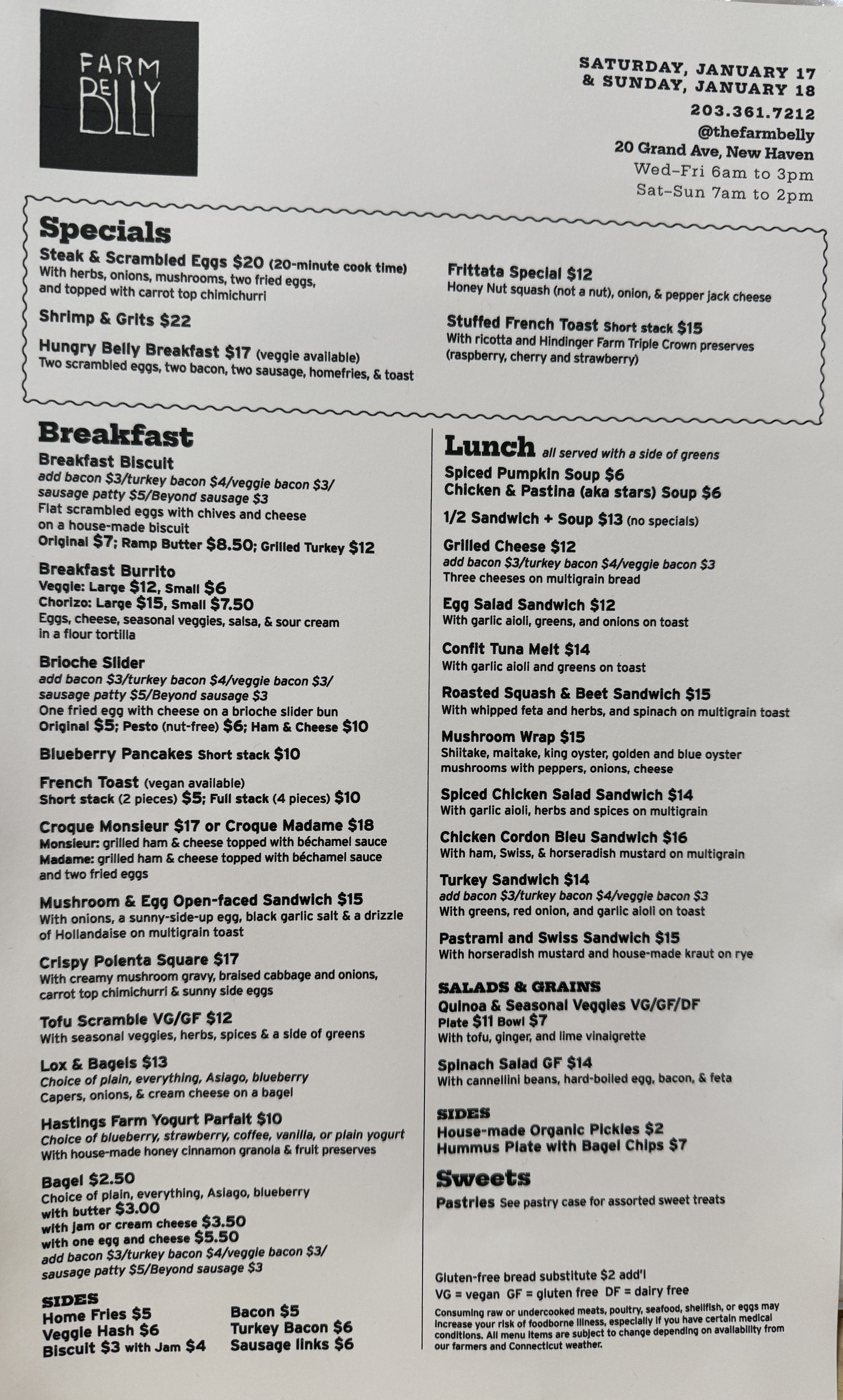 Current Cafe Menu